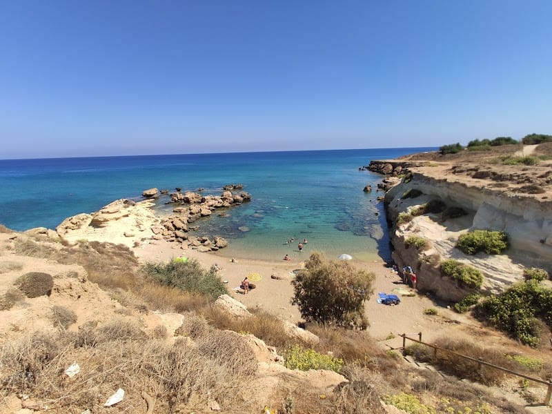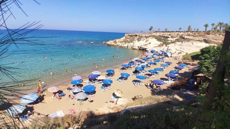 Asprokremmos Beach, also known as Fireman’s Beach, Kapparis Beach or M.M.A.D Beach, is a hidden gem nestled in a picturesque cove on the Cyprus coast. This stunning beach offers an idyllic setting for a day of relaxation and tranquility. One of the beach’s most distinctive features is its location at the base of a majestic cliff. This natural barrier not only adds to the beach’s scenic beauty but also provides protection from strong winds, making it a perfect spot for a peaceful day by the sea.